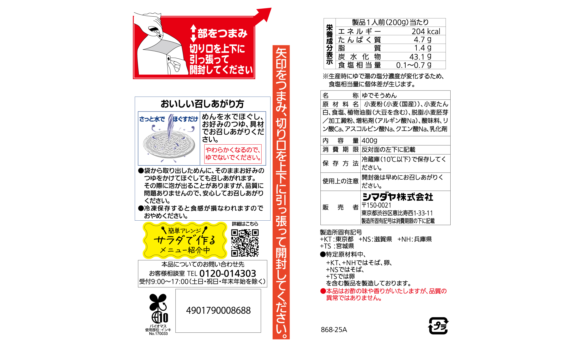 詳しい商品特長、1食分のめんの取り出し方については以下ページもご覧ください。