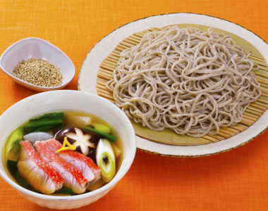 - 「流水麺」国産そば粉使用 そばを水でほぐし、ざるでよく水切りして器に盛ります。